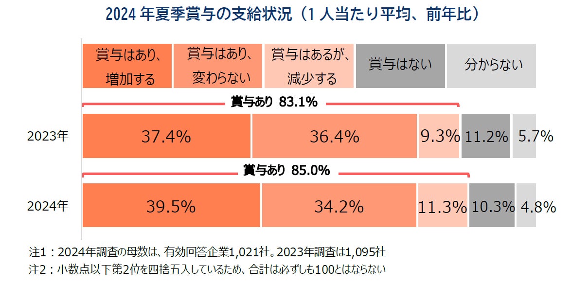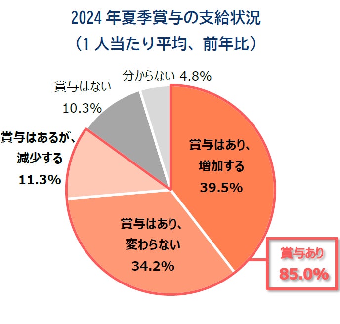2024年夏季賞与、企業の約4割で1人当たり平均支給額が前年より「増加」