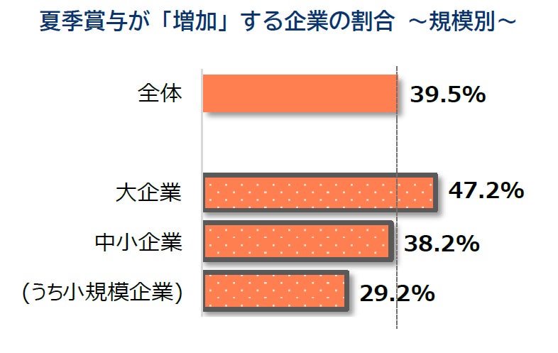 「大企業」の約5割で夏季賞与が「増加」。一方、「小規模企業」は全体を10ポイント下回る