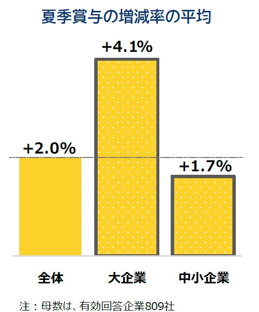 夏のボーナス、前年より「増加」が約4割 支給額は平均2.0%増、規模間格差が顕著