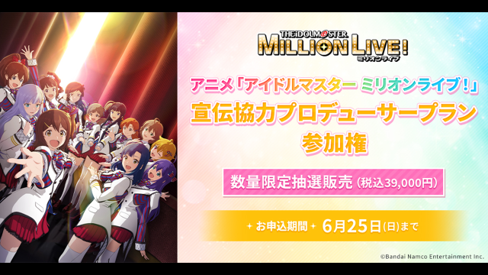 アニメ「アイドルマスター ミリオンライブ!」の成功に向けて、宣伝活動にご協力いただける「宣伝協力プロデューサー」さんを募集させていただきます!