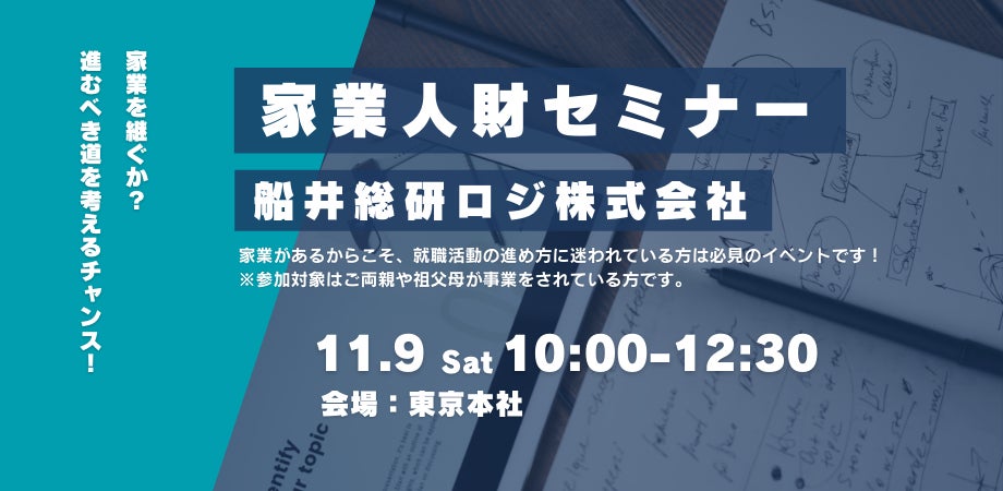 企業経営者のご子息・ご息女の学生の方へ|次世代経営者向け「家業人財セミナー」を2024年11月9日(土)開催|船井総研ロジ株式会社
