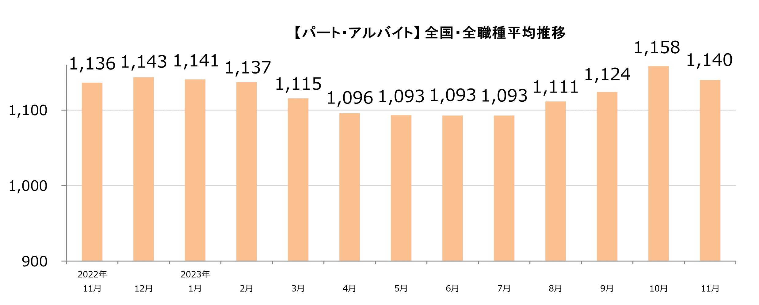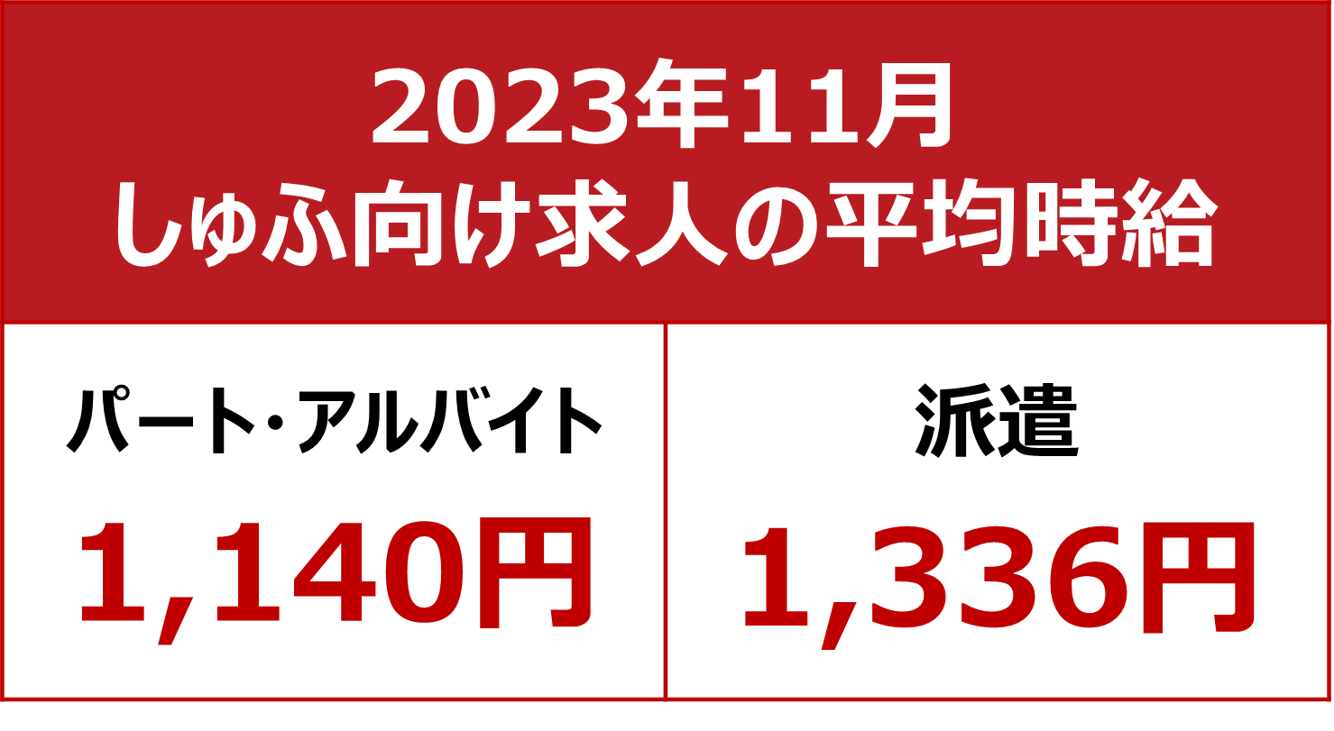 【2023年11月 主婦求人の平均時給】パート・アルバイト:『1,140円』、派遣:『1,336円』/介護業界では人材獲得競争の激化により、時給引き上げの動きも