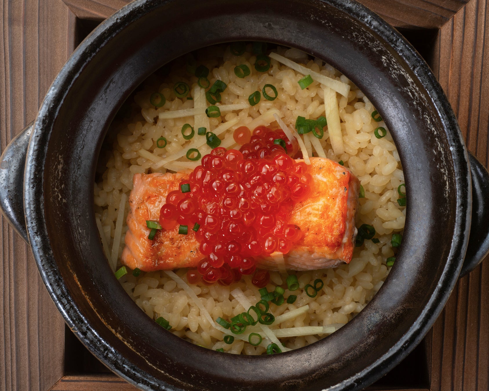 ◆炭火焼きサーモンといくらの土鍋ご飯 1,590円(税込)