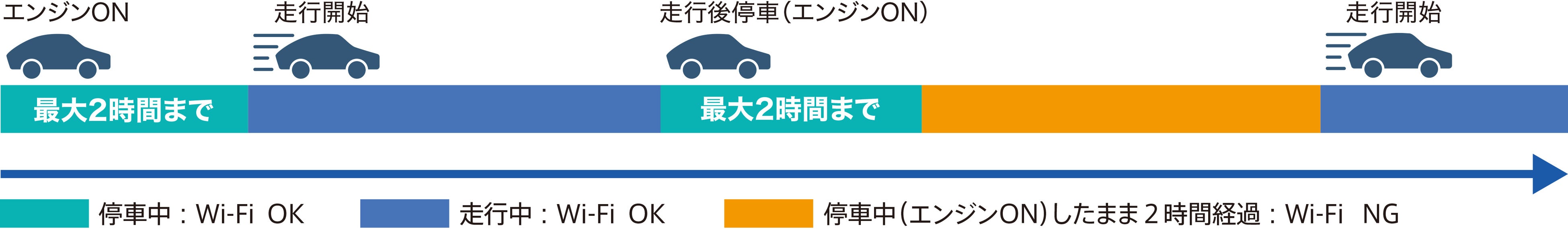 今回、エンジン始動後や走行後の停車時のWi-Fiスポット機能利用時間が最大2時間に拡大※4。走行中だけでなく休憩時間や送迎などの待ち時間も、ストレスを感じることなく車内Wi-Fiを利用できます。さらに、ネットワークスティック同梱モデル(-DCモデル)には「docomo in Car Connect」の1年間無償使用権が付いています。