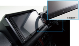 ・車室内のコンソールに溶け込み先進性を感じさせるフルフラットデザインを採用。本体操作キー部分に異なるドットをあしらうことで、デザイン性と直感的な操作性を両立。