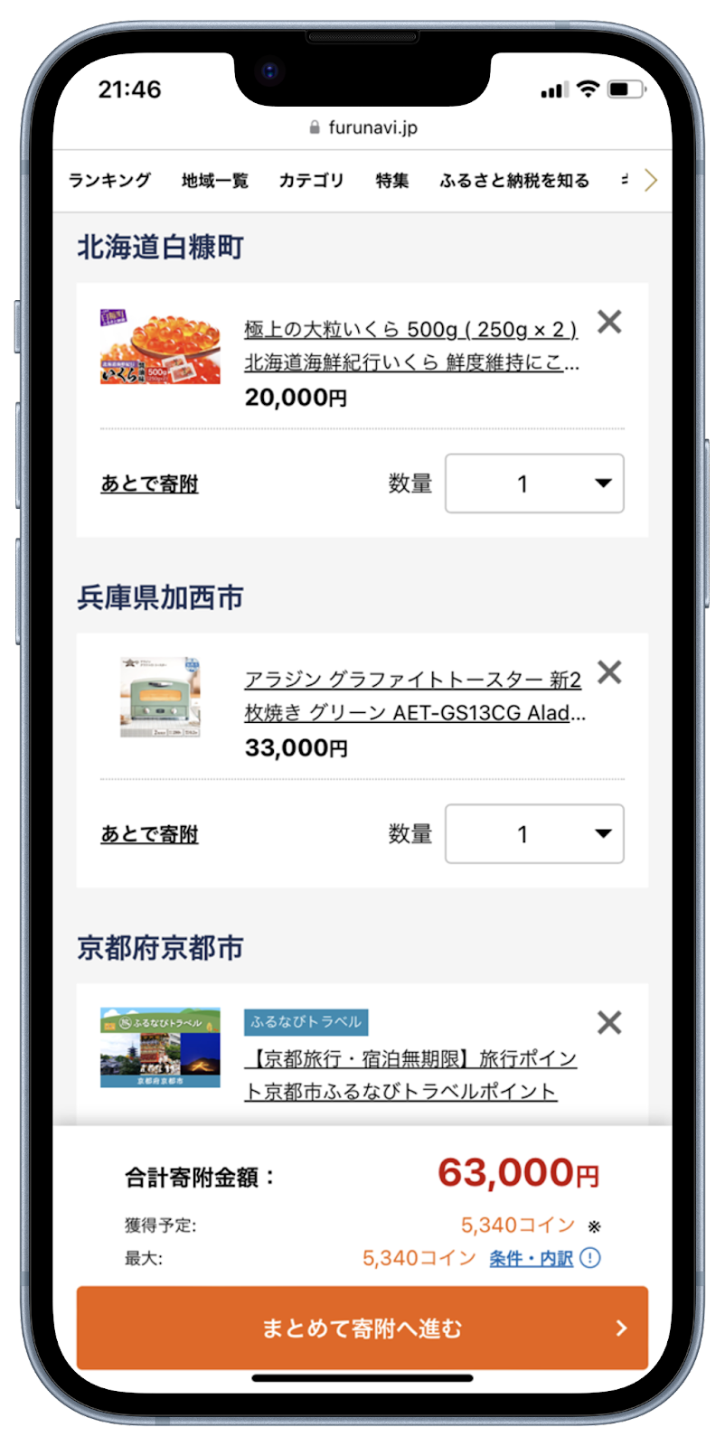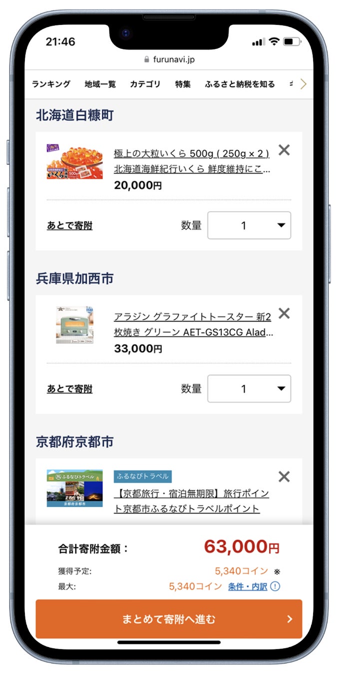 ふるさと納税サイト「ふるなび」がカート機能を提供開始!一度の決済で複数自治体への寄附が可能になりました。