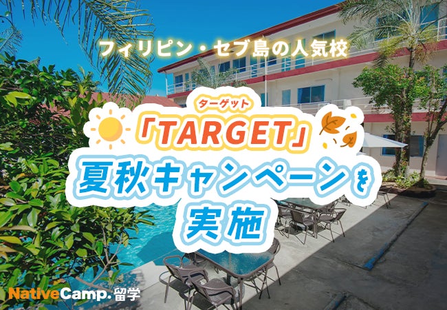 ネイティブスピーカーと回数無制限のオンライン英会話サービス「ネイティブキャンプ英会話」を展開する株式会社ネイティブキャンプ(東京都渋谷区 代表取締役: 谷川国洋)は、海外留学エージェントサービス「ネイティブキャンプ留学」において、フィリピン・セブの人気校「TARGET」にて、夏秋キャンペーンを実施いたします。