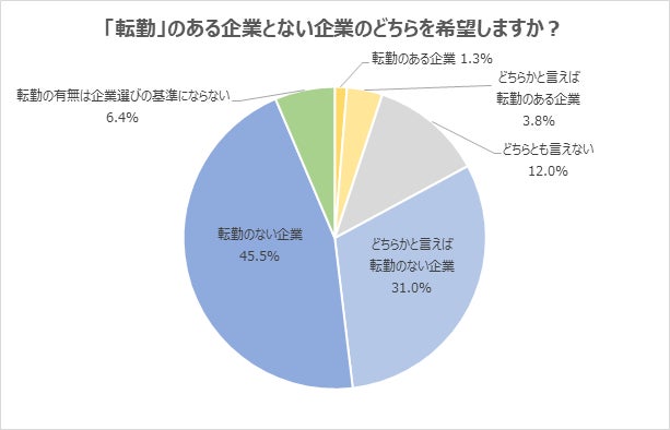 株式会社学情(本社:東京都千代田区)は、20代の仕事観をひも解くために、アンケート調査を実施しました。今回は、「転勤」に関して調査。「転勤」のない企業を希望すると回答した20代が8割に迫りました。「環境を変えたくない」「実家の近くに住みたい」などの声が上がっています。また、「コロナ禍で『転勤』への意識が変化したか」という質問では、「転勤を希望しなくなった」と回答した20代が44.7%に上りました。「どちらかと言えば転勤を希望しなくなった」22.6%を合わせると、約7割が「転勤」を希望しなくなったことが分かります。「都道府県をまたぐ移動が制限されると、帰省しにくい」「家族の近くに住みたいと思うようになった」「リモートでできることが増えたので、わざわざ転勤する必要性を感じにくくなった」などの声が寄せられました。
