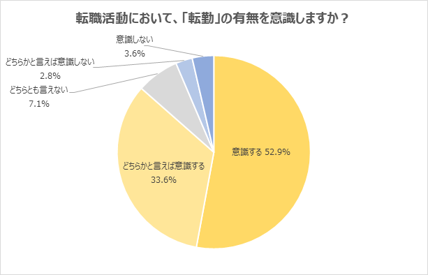(2) 転職活動において、「転勤を意識する」と回答した20代が86.5%に達する。「意識しない」は6.4%に留まる