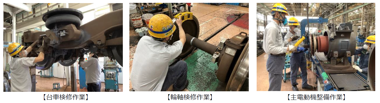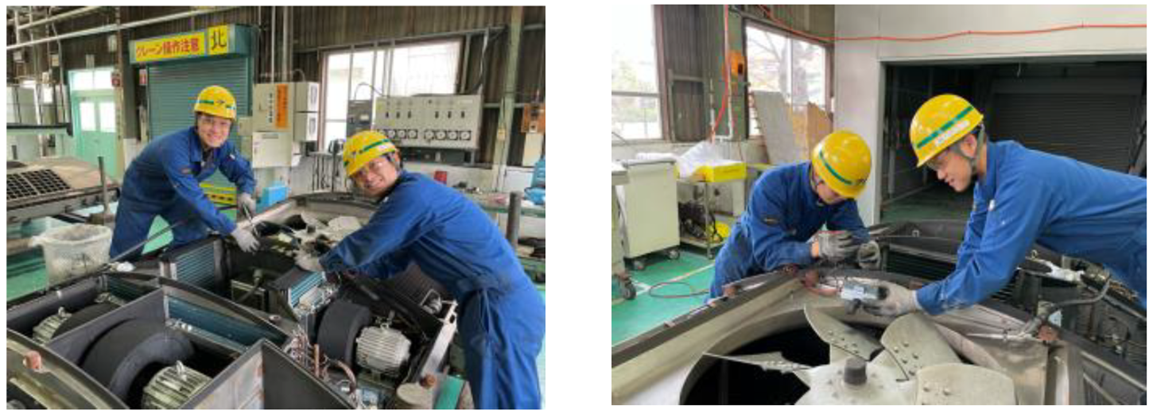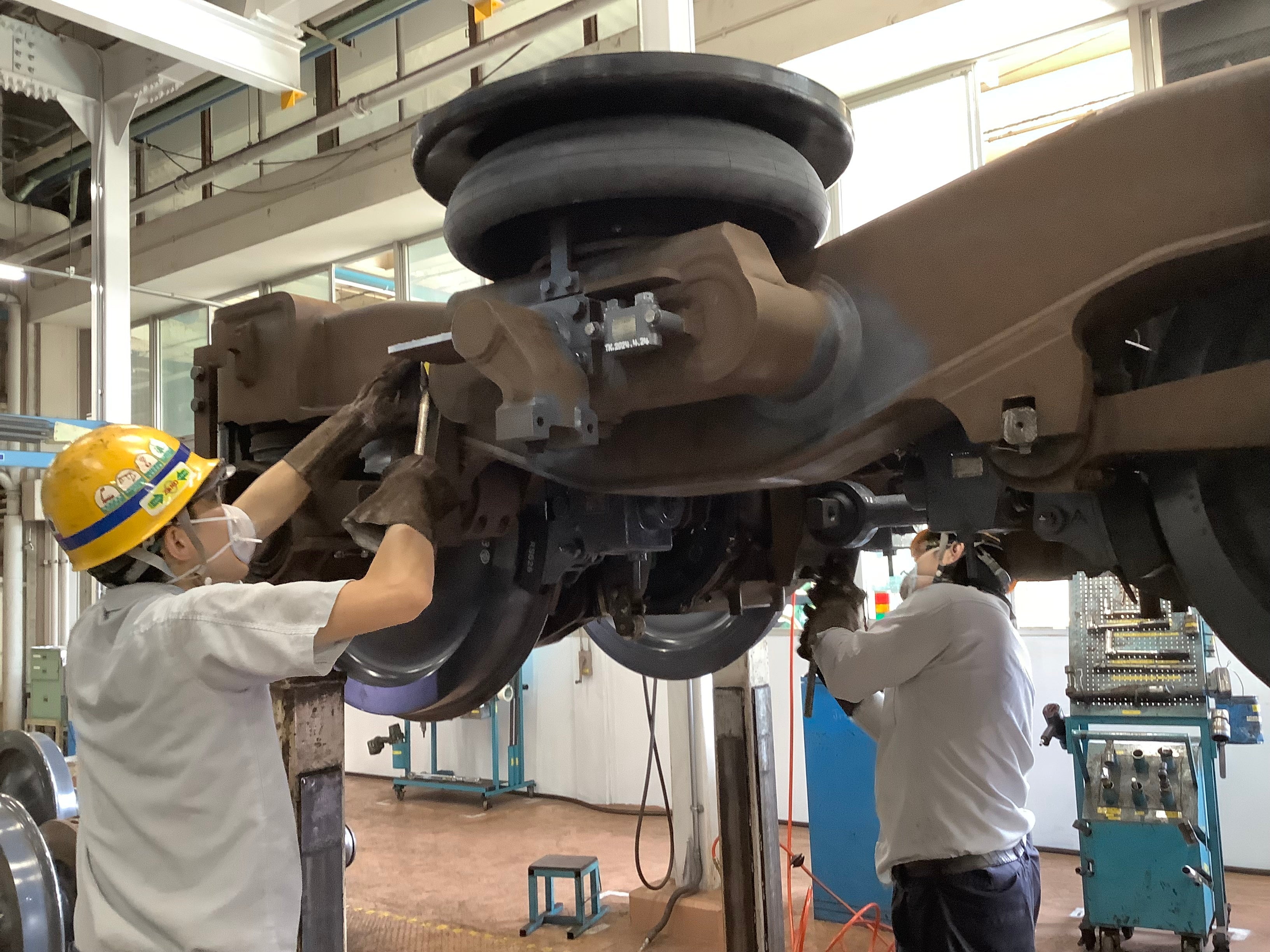 2022年から郡山総合車両センターで実習している実習生2名の作業の様子。実習も2年経過しました。