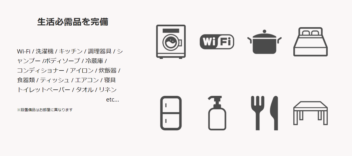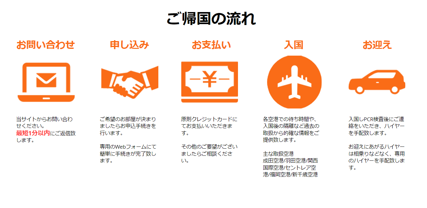 提供する部屋はマンションのため、普段の生活をするように帰国時も過ごすことができ、送迎プランによって公共交通機関が必要なく宿泊場所に行くことが可能です。