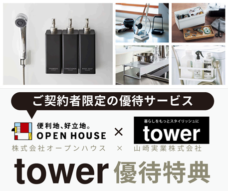 オープンハウスでご契約いただきましたお客様を対象に、「tower(タワー)」優待特典をご提供させていただきます。
