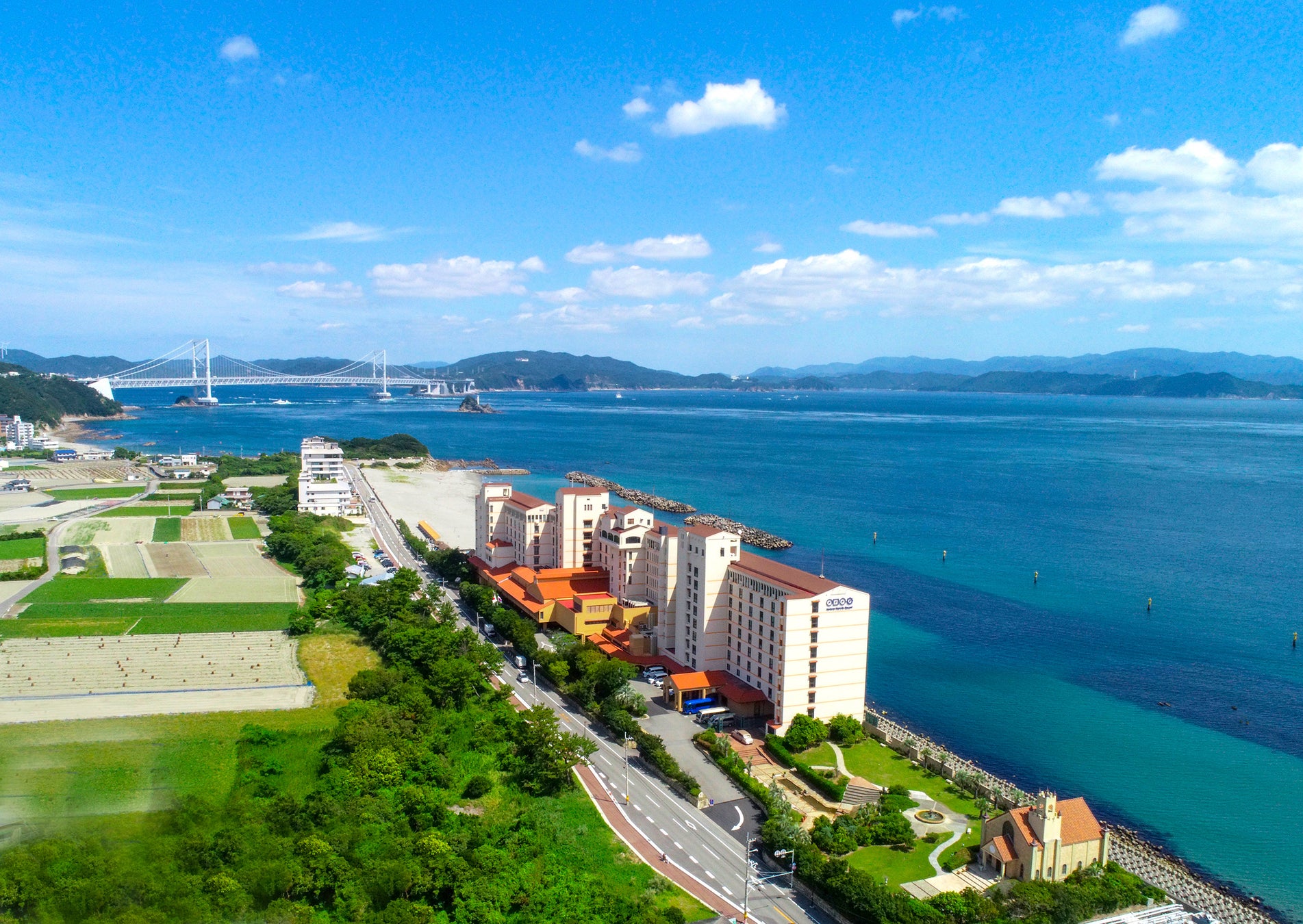 淡路島から車で10分、瀬戸内海国立公園内のオーシャンフロントホテル。目の前に鳴門海峡と淡路島の絶景が広がり、海に昇る朝日やムーンロードを望みます。
