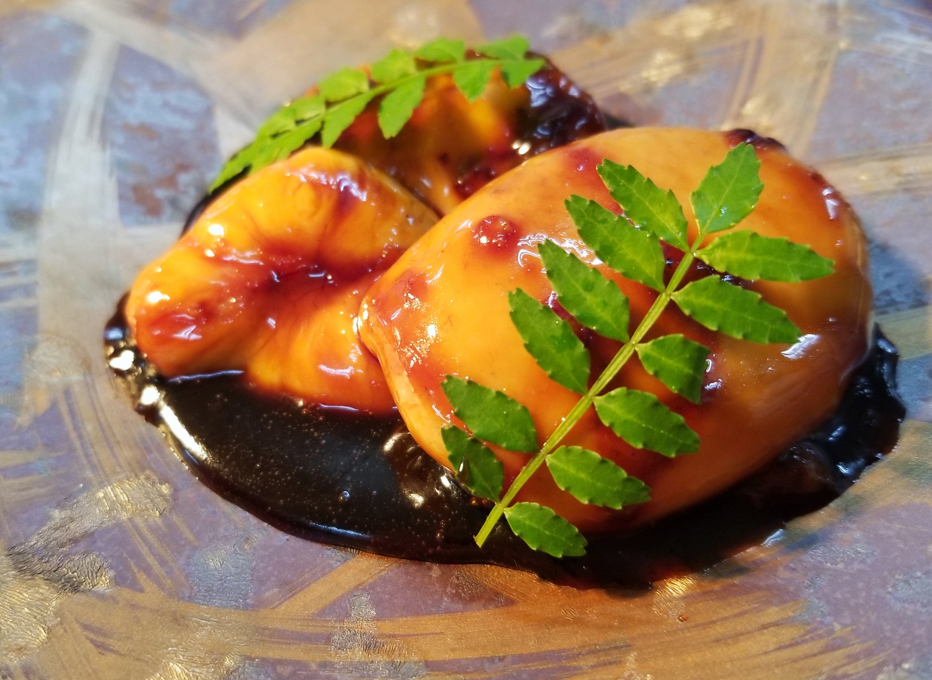 ・先付:ふぐ茶碗蒸し・てっぴ(身皮・本皮のおろし和え)