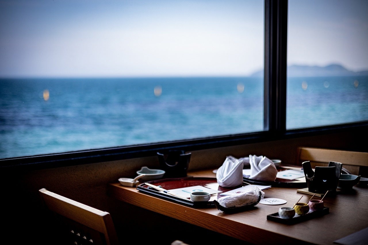 目の前に淡路島と鳴門の海が広がる日本料理レストラン。鳴門鯛や鱧、ふぐ、鮑、伊勢海老など、徳島鳴門近海の魚介、阿波牛、阿波尾鶏、阿波野菜など、厳選した地元食材と季節の地酒をご堪能ください。