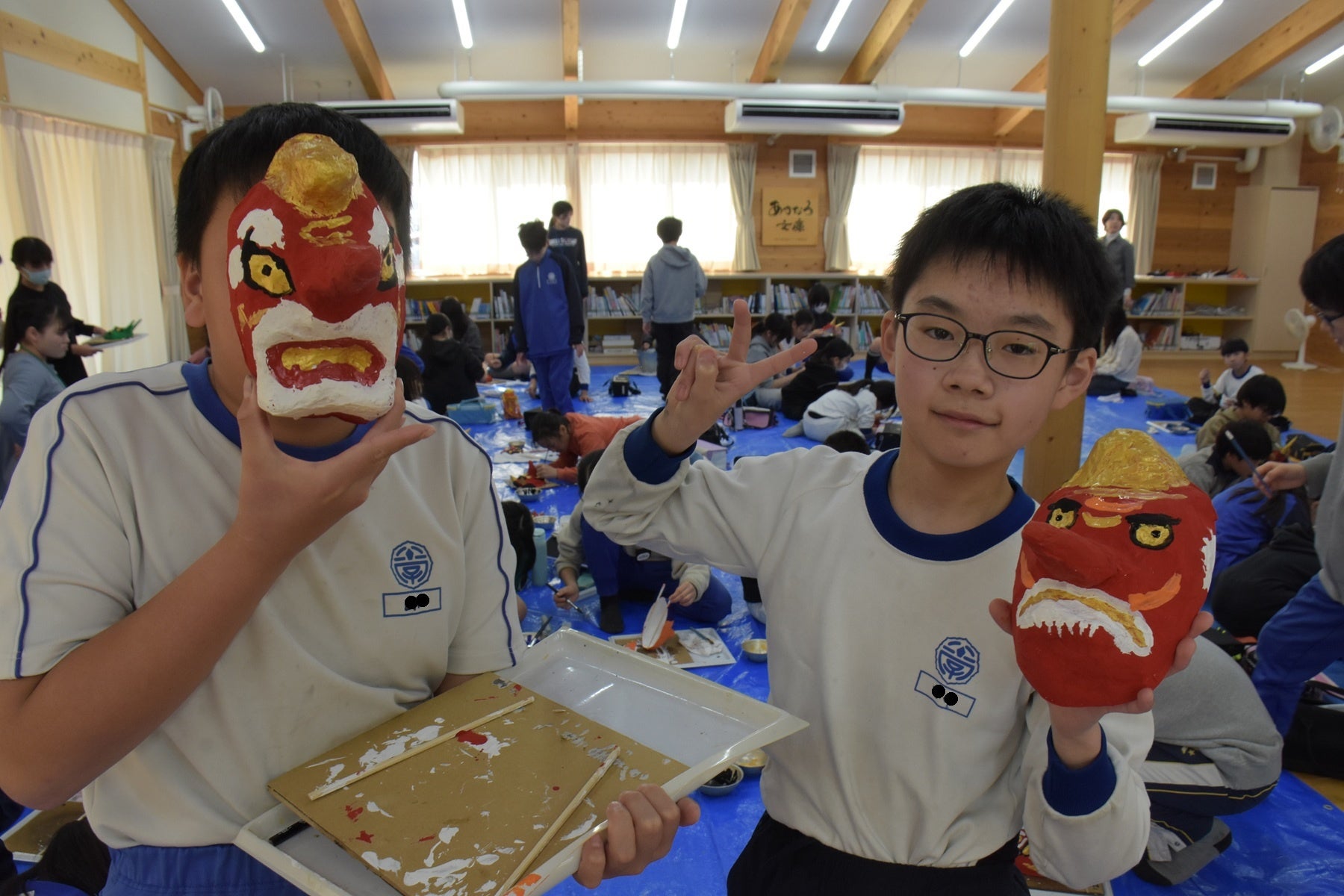 国の重要無形民俗文化財「豊橋鬼祭」に合わせ、豊橋市立八町小学校で「豊橋張り子」の鬼面と天狗面作りが行われました。5年生約60人が面作りを通して、地域の伝統文化・技術への理解を深めました。