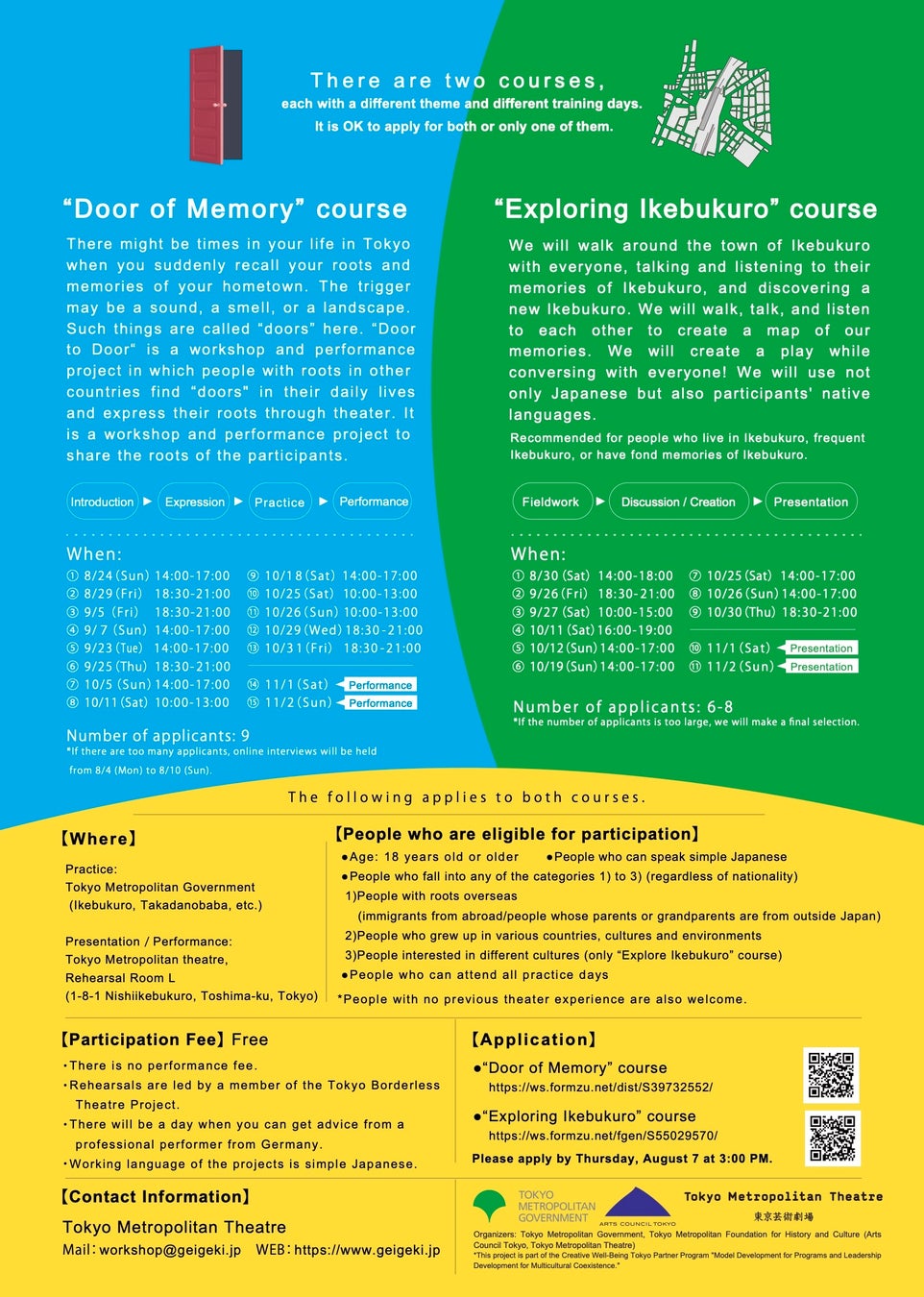 「記憶のドア」と「池袋を探検」のふたつのコースを実施します。