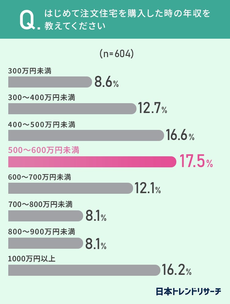 続いて、はじめて注文住宅を購入した時の年収を調査してみました。