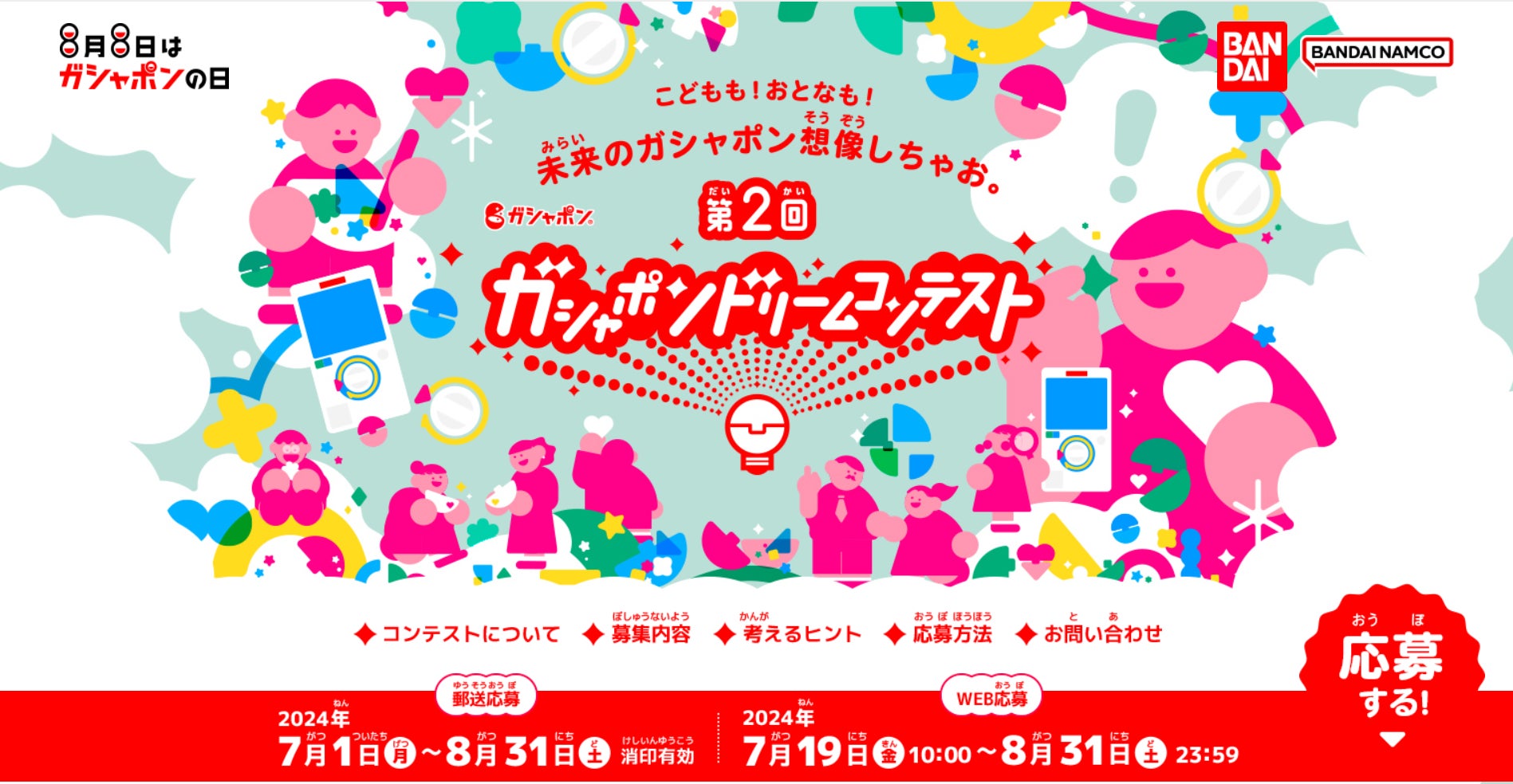 株式会社バンダイが開催している「第2回 ドリームコンテスト」は、子どもも大人も参加できるアイデアコンテストです。「未来のガシャポン(R)」をテーマに、自由な発想のアイデアを募集。親子で一緒に楽しく取り組めるコンテストです。応募締切は、8月31日(土)まで。