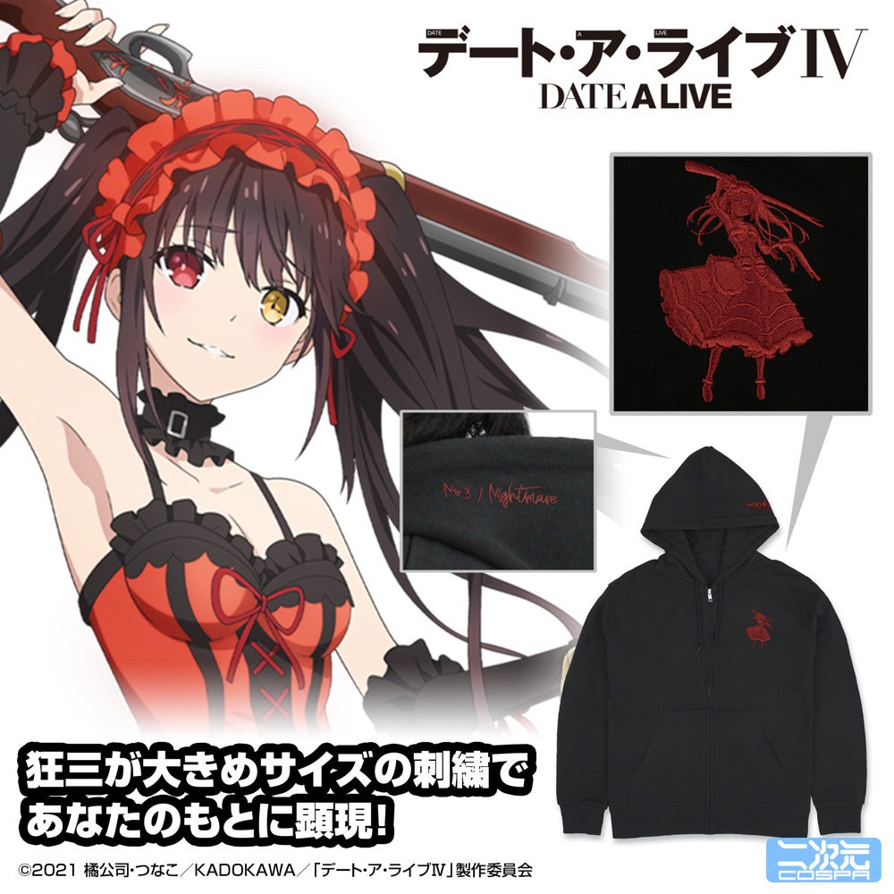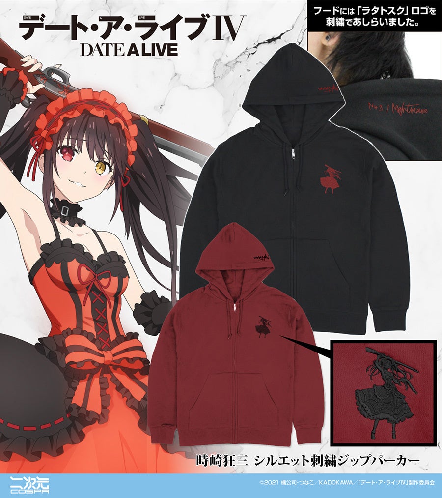 『デート・ア・ライブⅣ』より、時崎狂三」のシルエットを刺繍で立体的に表現したジップパーカーがが二次元コスパから登場。