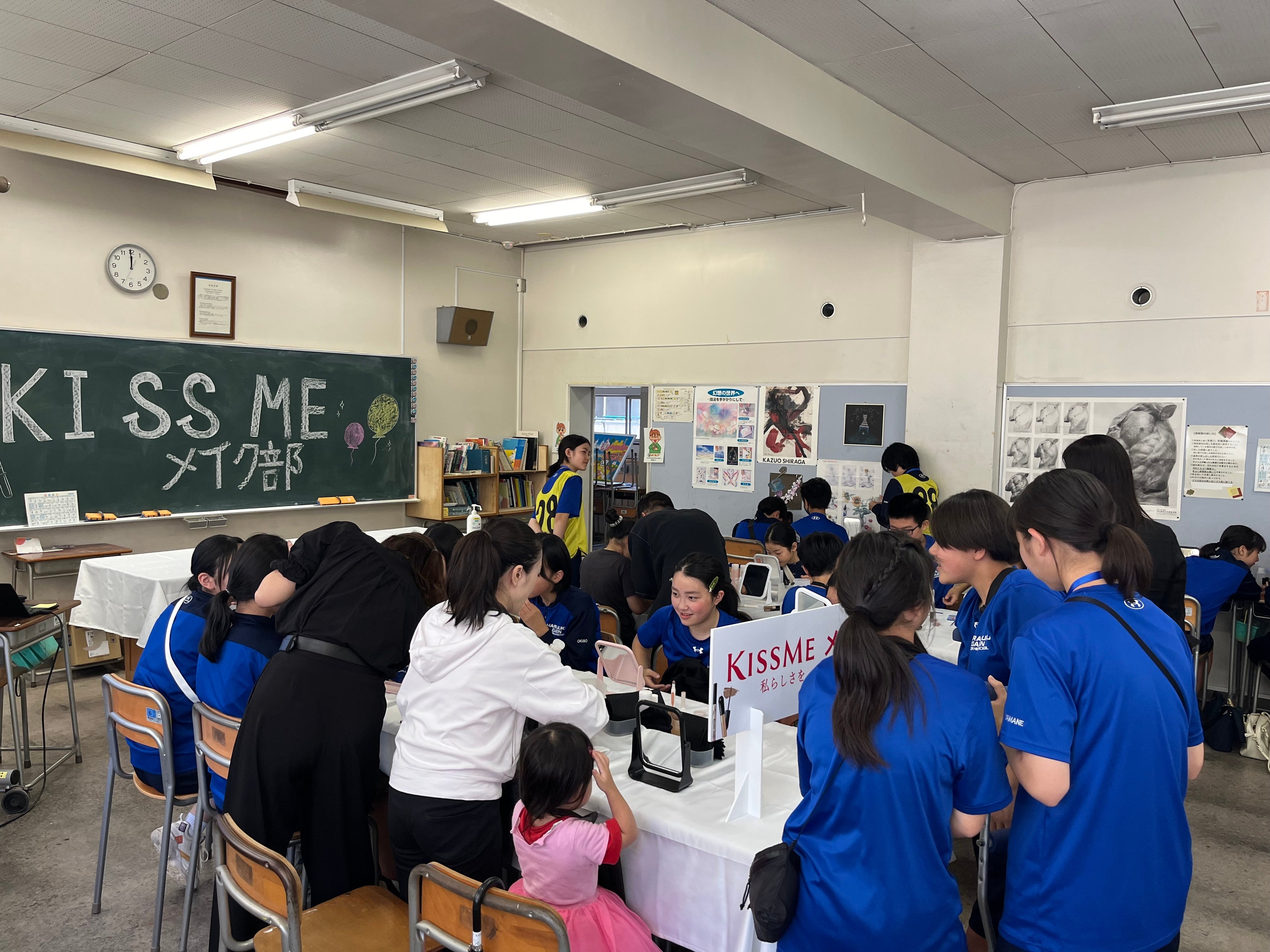 当日は同校の学生・保護者・教員の皆さんをはじめ近隣にお住いの方々など、幅広い年齢・性別の総勢230人以上がKISSMEメイク部にご参加いただきました。