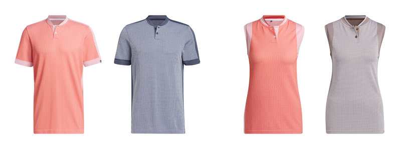 アディダスゴルフの「頂点の一着。」として開発された本コレクションは、一年間どのような季節や気候でも、世界のツアーで戦うトップアスリートのパフォーマンスを引き出すことを念頭に、細部まで考え抜かれています。春に登場する注目のテクノロジーとして、機能性素材の「プライムニット」で構成されたポロシャツやジャケット、スコートなどです。プライムニットは、編み上げる密度を部分によって調整することによって、適正なフィットとストレッチ性を両立し、加えて高い通気性と快適性を実現しており、早春から初夏のラウンドに適しています。また、アディダス最先端クーリングテクノロジー「HEAT.RDY」搭載のシャツや、吸汗速乾に加えて「汗染みを防止」する素材のポロシャツといった夏の汗ばむ時期に活躍するプロダクトもラインナップいたします。