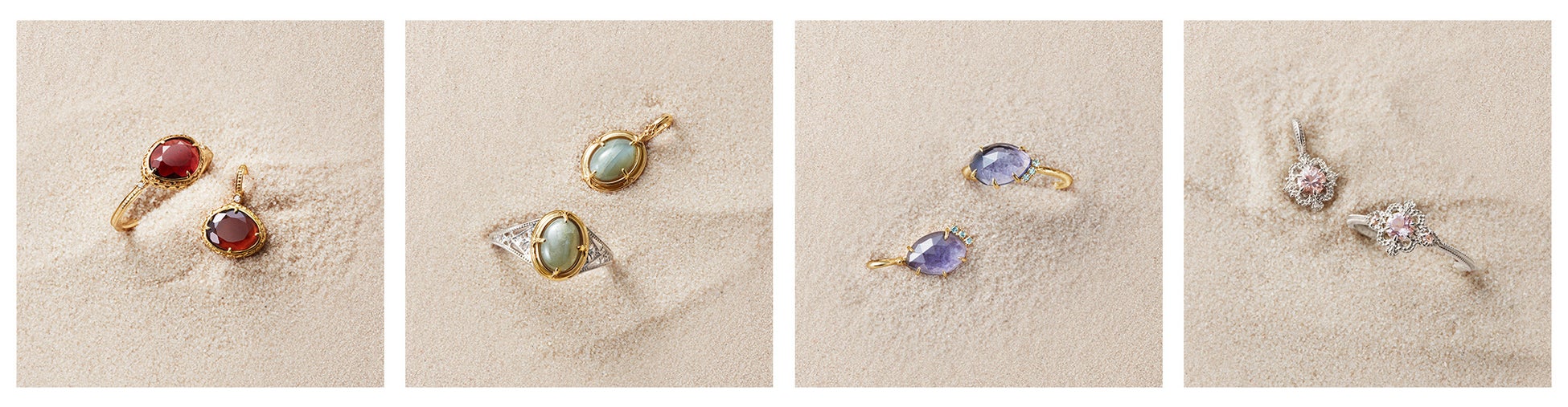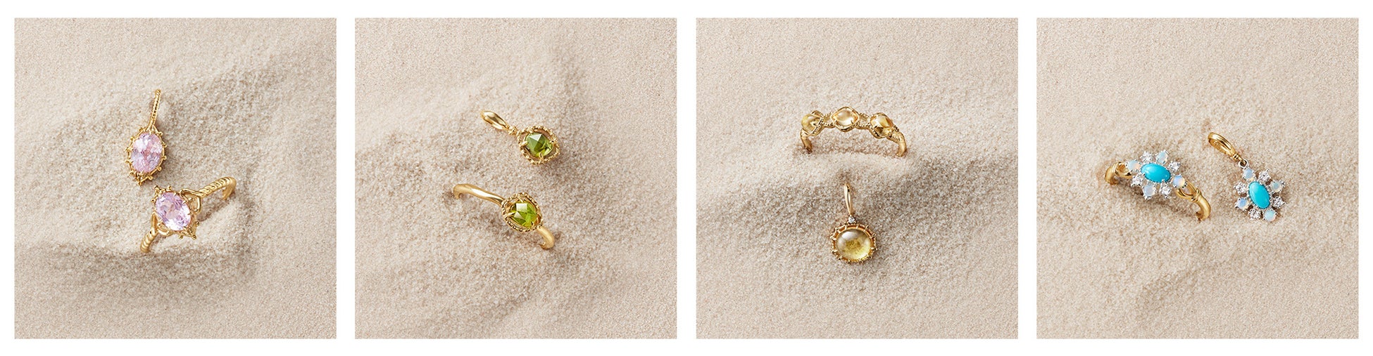 12か月を彩る天然石たち。全てのデザインには、アガットのモチーフであるシェルマークからインスパイアされた海のモチーフが隠れています。自分のために、大切な誰かのために、特別な1つを見つけてください。