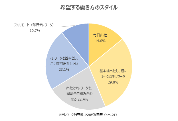 (3) テレワークを経験した20代が希望する働き方は、「基本は出社し、週に1~2回テレワーク」が29.8%で最多