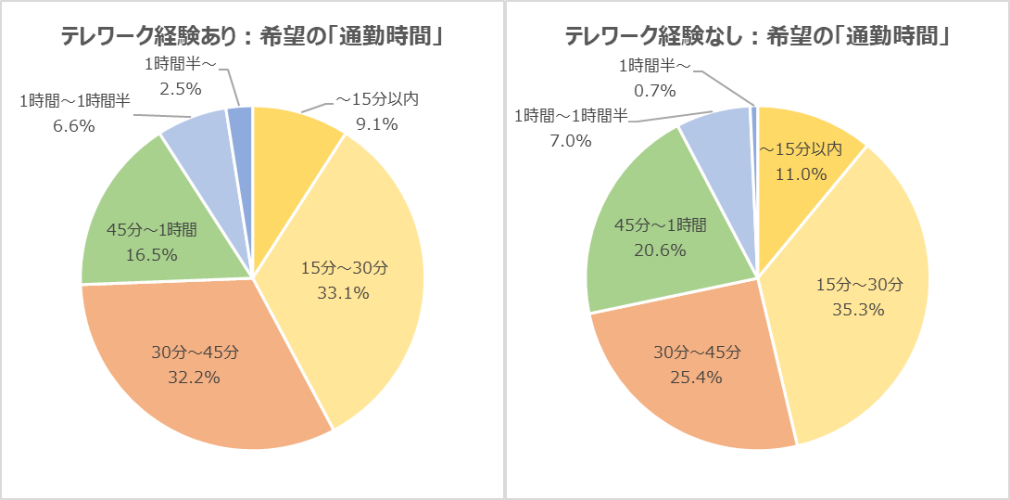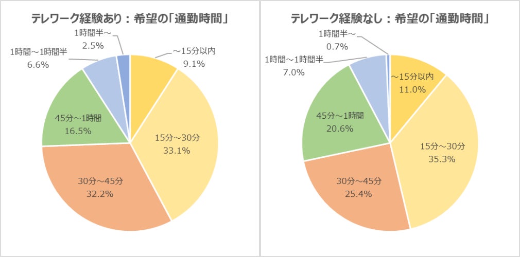 希望する通勤時間は「15分~30分」が最多。「通勤時間が短いほうが、自分の時間を確保しやすい」の声。テレワーク経験者の約半数は「便利さを重視し都心に住みたい」と回答/20代アンケート