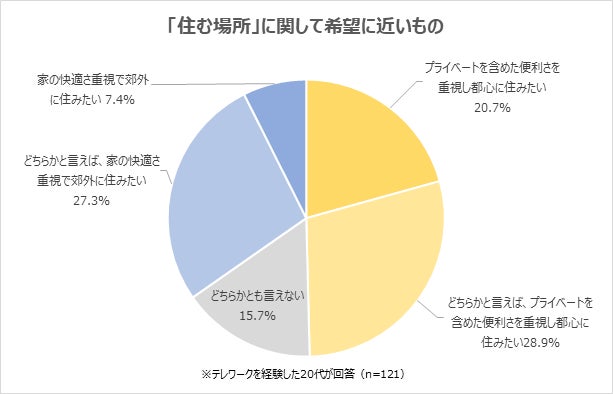 (2) テレワークを経験した20代の約半数が、「プライベートを含めた便利さ重視で都心に住みたい」と回答