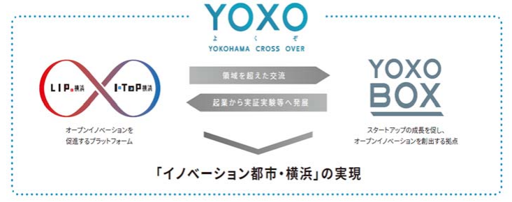 「ヨコハマ・クロスオーバー(YOXO)」を旗印として、みなとみらい 21 地区の研究開発拠点や、関内地区のベンチャー企業など、市内各地でイノベーション人材の交流を広げ、産学官で新事業の創出・育成に取り組んでいます 。また、「I・TOP 横浜」と「LIP.横浜」の2つのオープンイノベーションを推進するプラットフォームを相互に連携させることで、市内企業の IoT 及びライフイノベーションの取組を促進します。