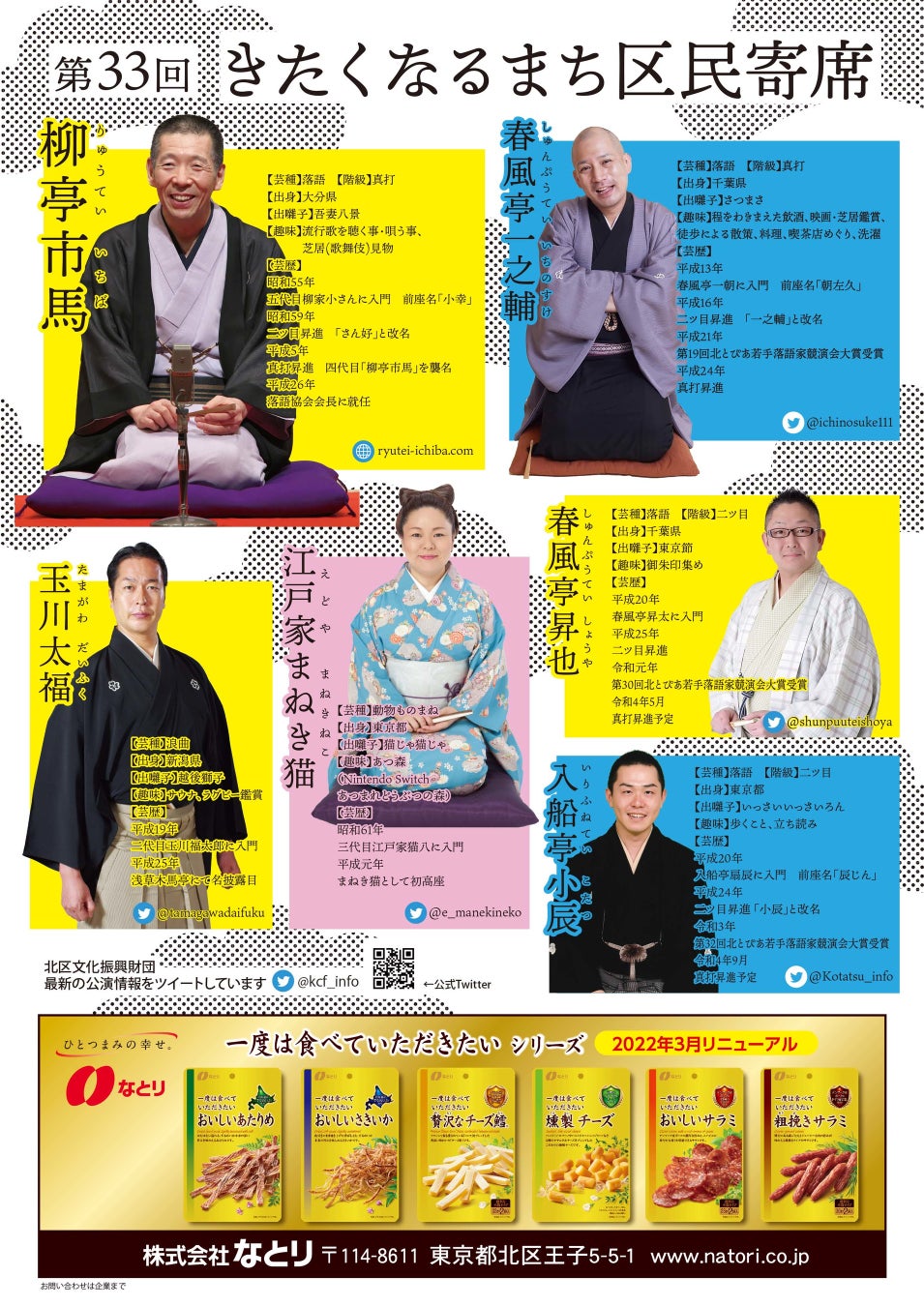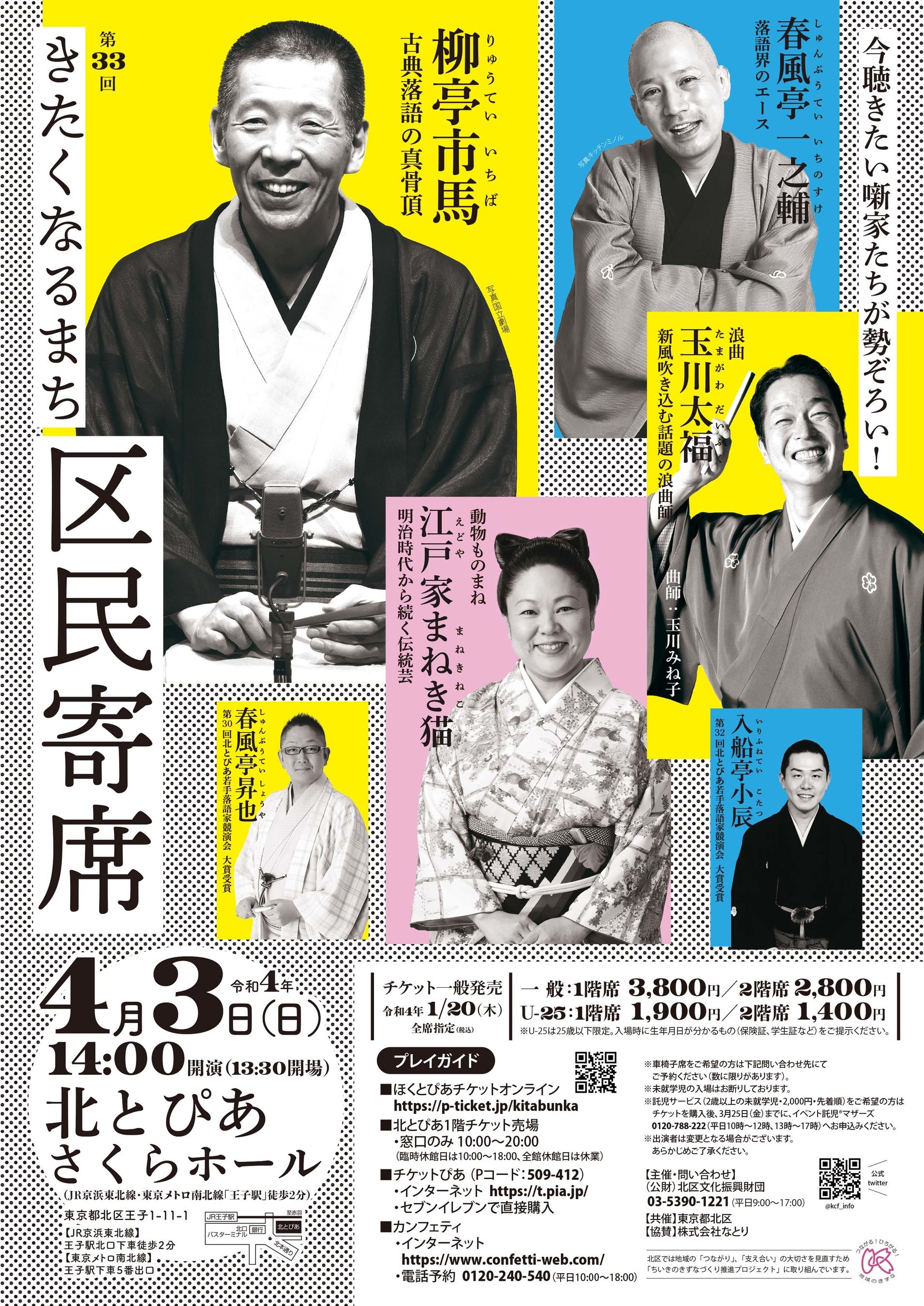 公益財団法人北区文化振興財団主催、『第33回きたくなるまち区民寄席』が2022年4月3日 (日)に北とぴあ さくらホール(東京都北区)にて上演されます。チケットはカンフェティ(運営:ロングランプランニング株式会社、東京都新宿区、代表取締役:榑松 大剛)にて発売中です。