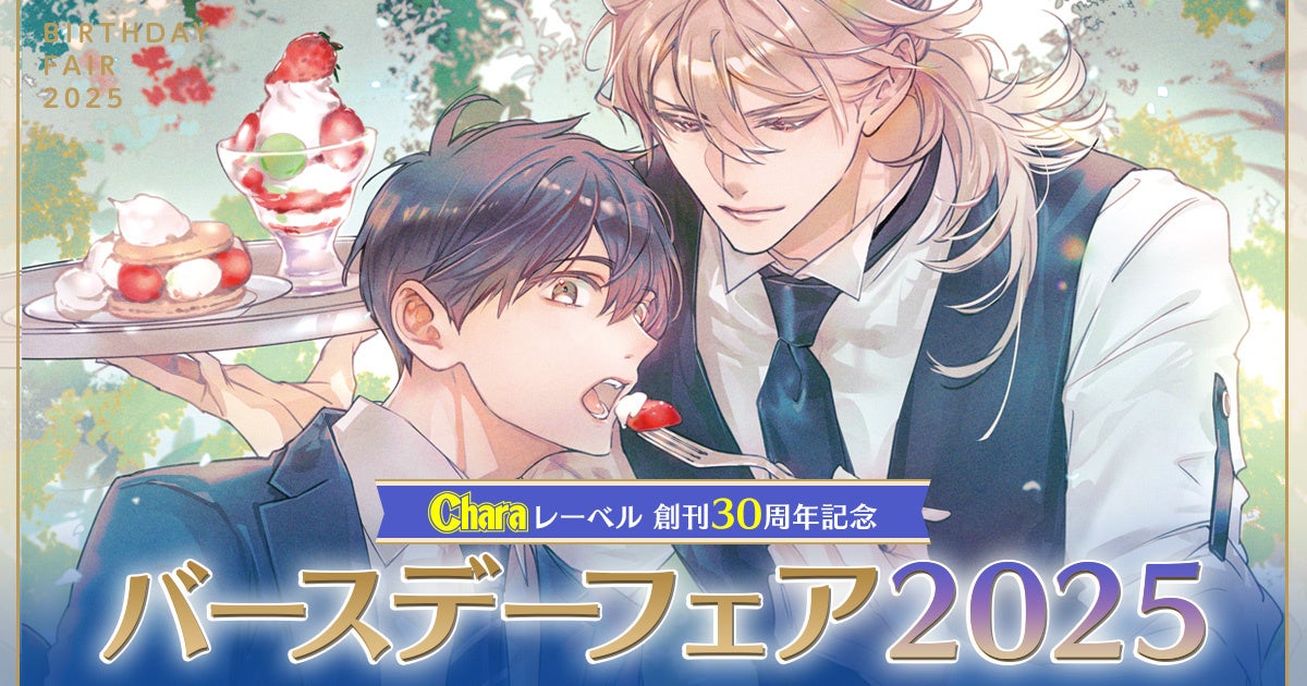 Charaレーベル創刊30周年を記念した、「Charaバースデーフェア2025」開催中!オリジナル図書カード、特製豪華小冊子が入手できる応募者全員サービスや、7月11日(金)より全国の書店でもらえるかき下ろし小冊子やクリアカードなどの盛りだくさんの豪華5大企画!