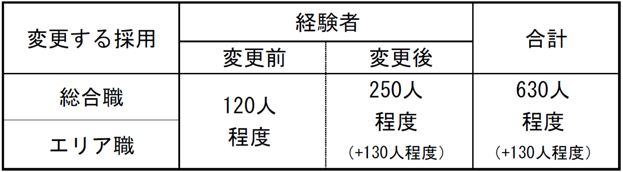 経験者エリア職:今年夏頃の公表を予定しております。