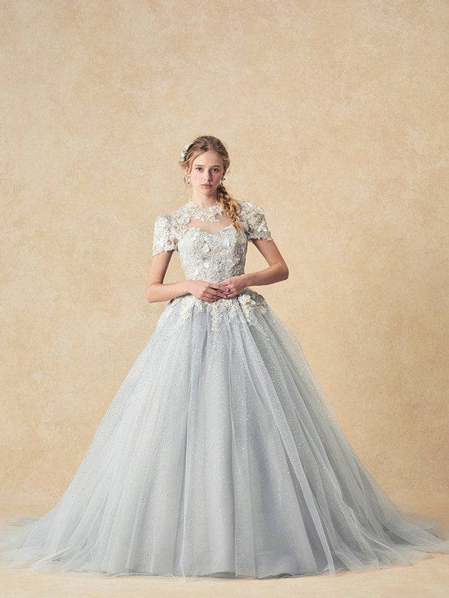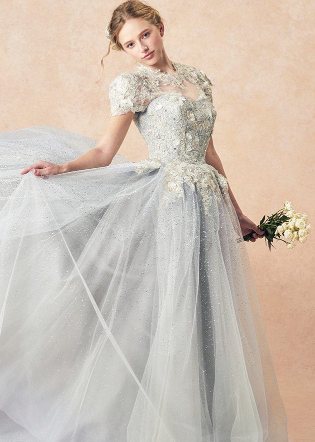 ANTEPRIMA 25th COLLECTIONでは特に力を注いた韓国風の煌めき。カラードレスは人気のゴールドとシルバーをそれぞれ淡いカラーで組み合わせました。繊細で軽やかなミニパフスリーブは韓国のトレンドを取り入れた今風のデザイン。新時代を彩るアイコニックな最強シルバードレスに仕上がりました。