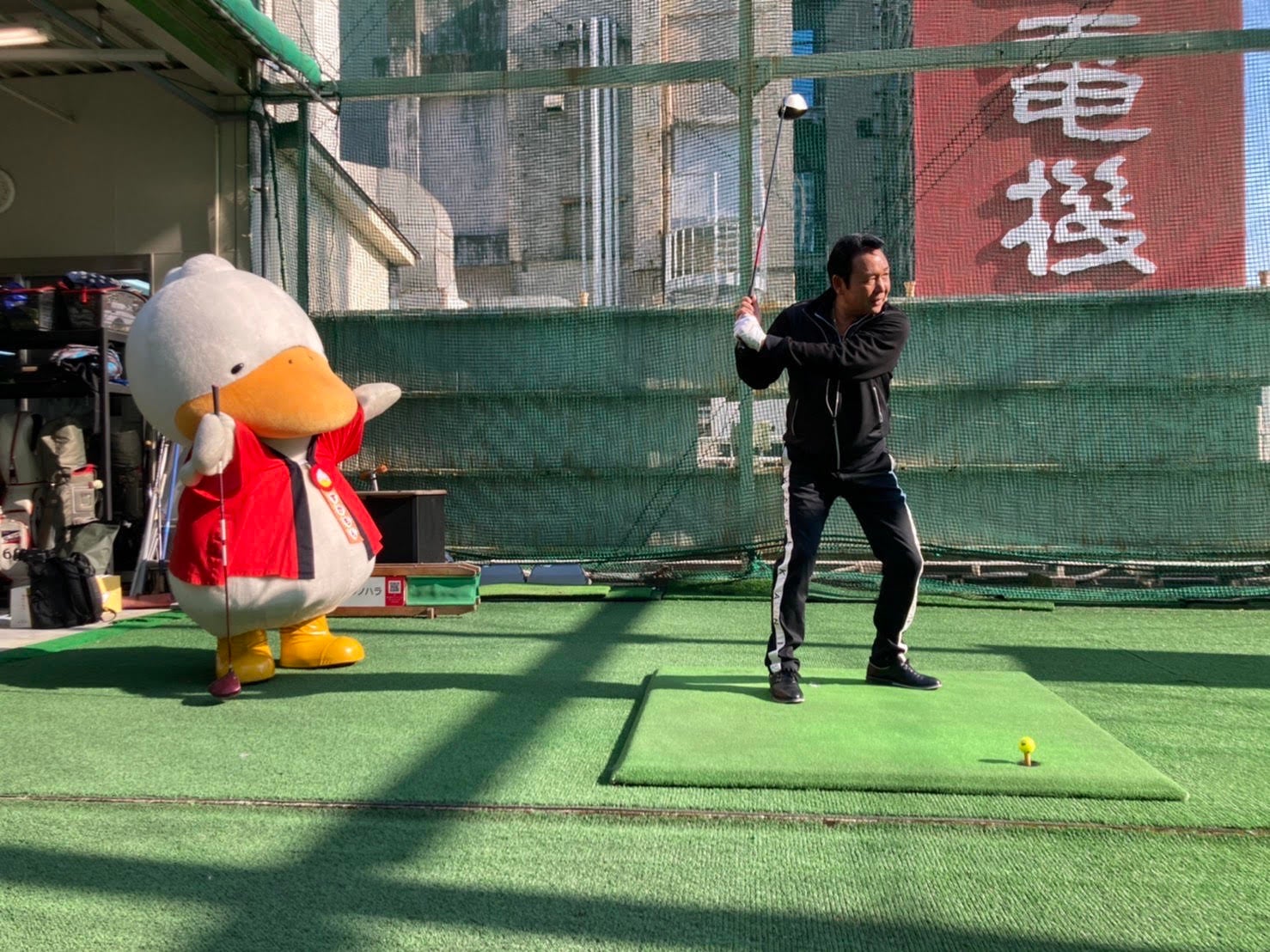 続けてすがもんのショット。ドライバーがボールに当たるか当たらないかのとにかく可愛いミスショットに「これは素振り素振り!」とすかさずフォローを入れる山本。しかし、次の瞬間気持ちの良いショットの音が!なんとすがもん、高さは山本に劣るものの勢いのあるナイスショットを決め、会場からは思わず大きな拍手が起こった。