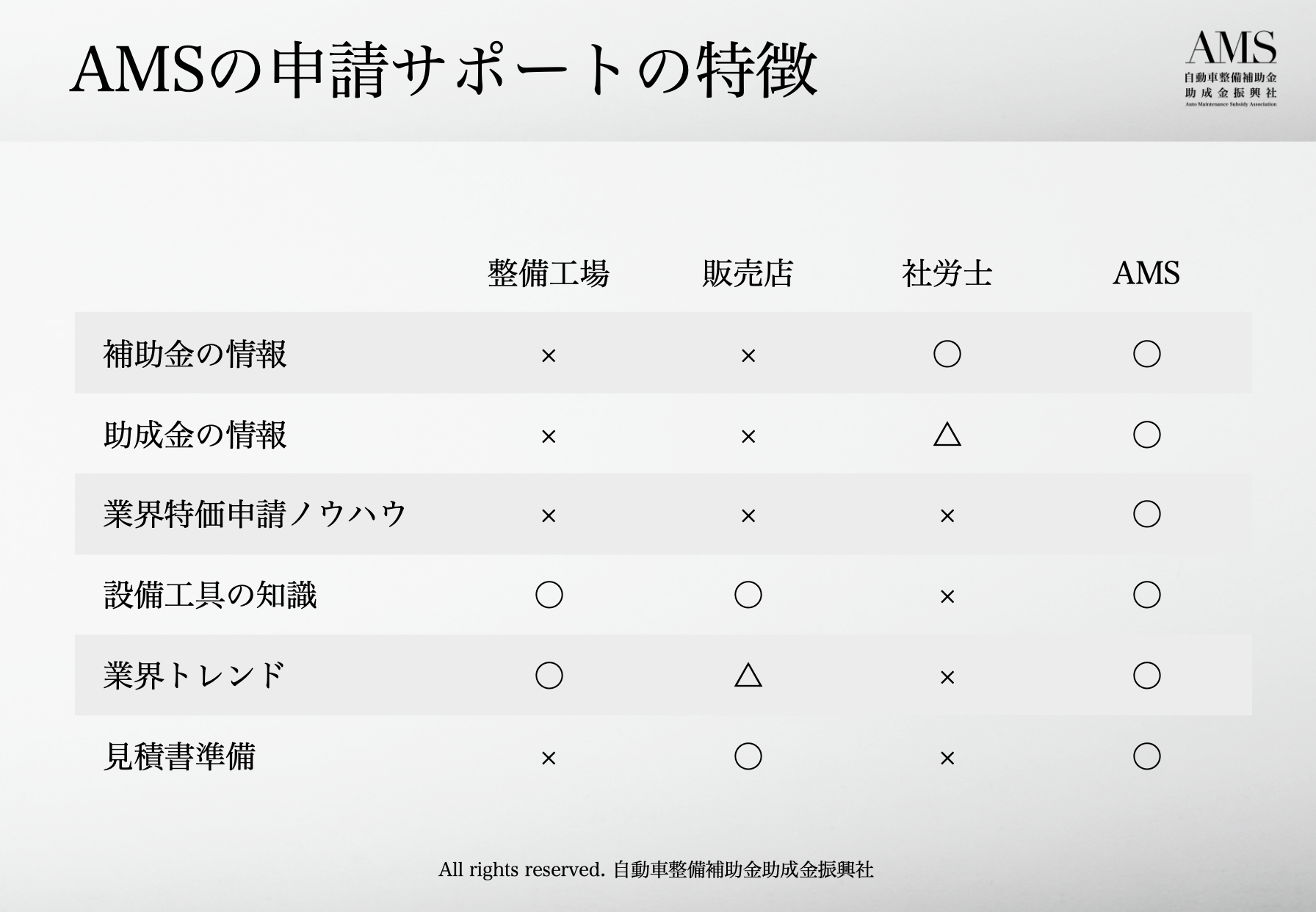 ■AMS 自動車整備補助金助成金振興社