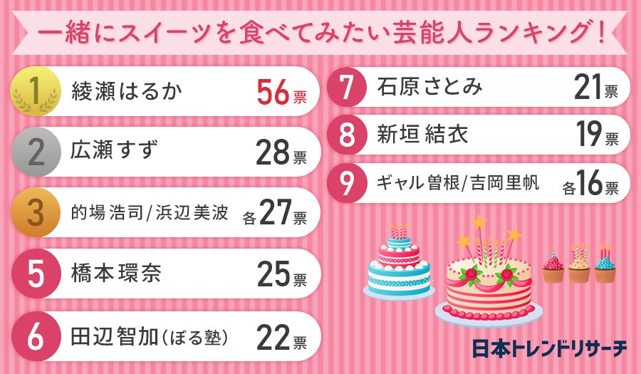 日本トレンドリサーチ・一緒にスイーツを食べたい芸能人に関する調査