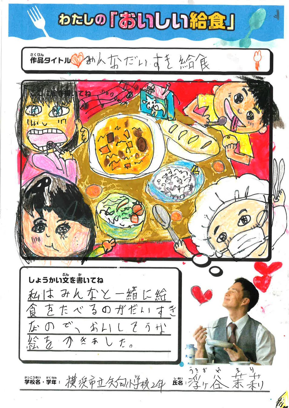 最優秀賞:「みんなだいすき給食」(浮ヶ谷茉莉さん/横浜市立矢向小学校2年生)
