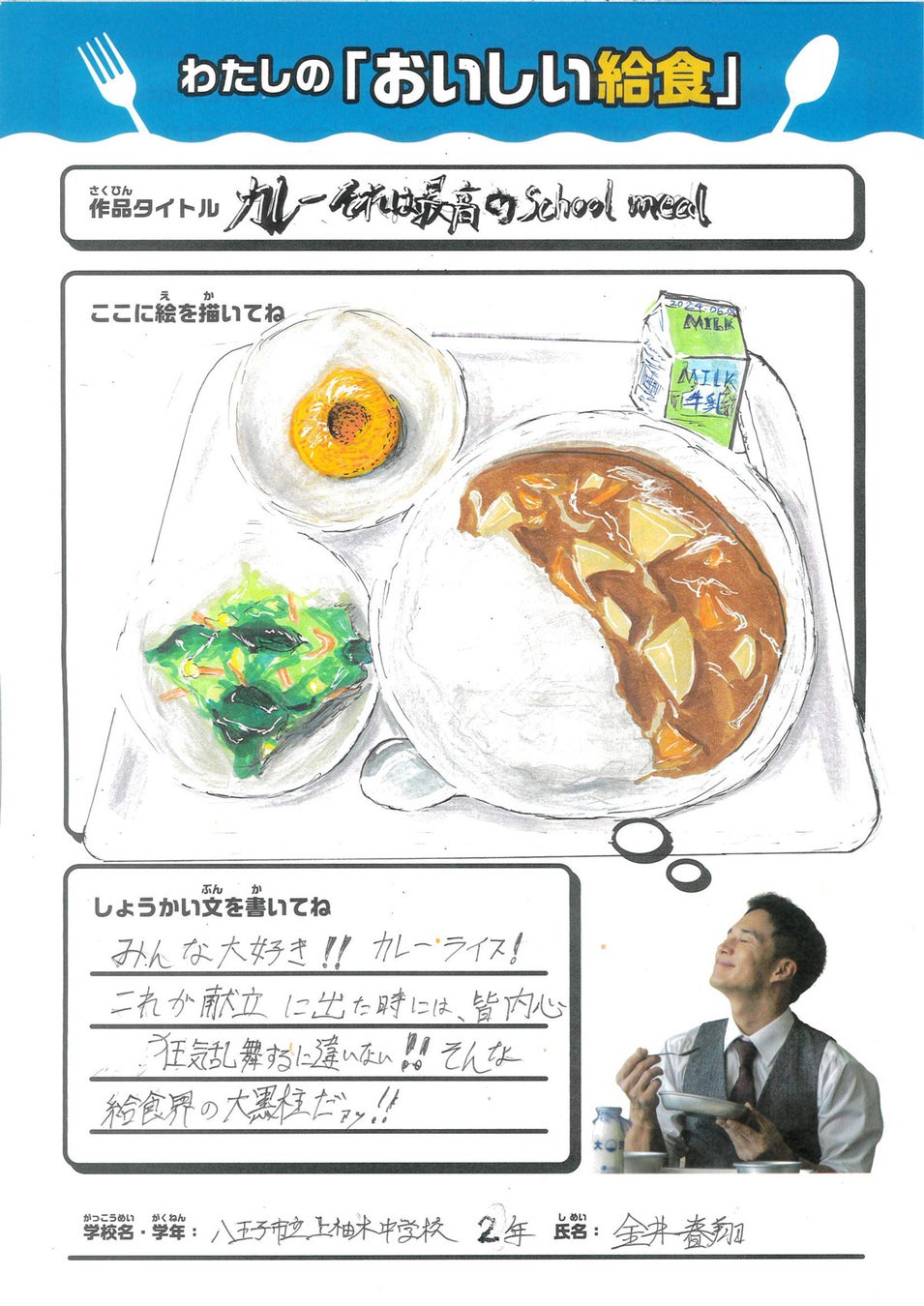 優秀賞:「カレー それは最高のSchool meal」(金井春翔さん/八王子市立上柚木中学校2年生)