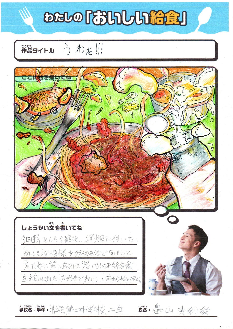 優秀賞:「おいしい給食いただきます」(朝日詩歩さん/草津町立草津中学校1年生)