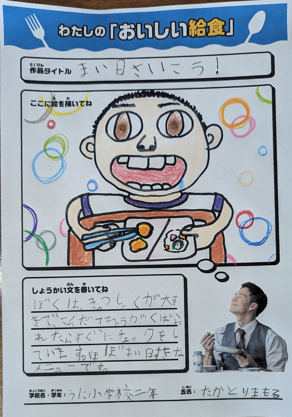 「ぼくは給食が大好きで献立表が配れたらすぐにチェックしています。ほぼ毎日好きなメニューです。」