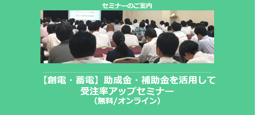 【創電・蓄電】助成金・補助金を活用して受注率アップセミナー(無料/オンライン)