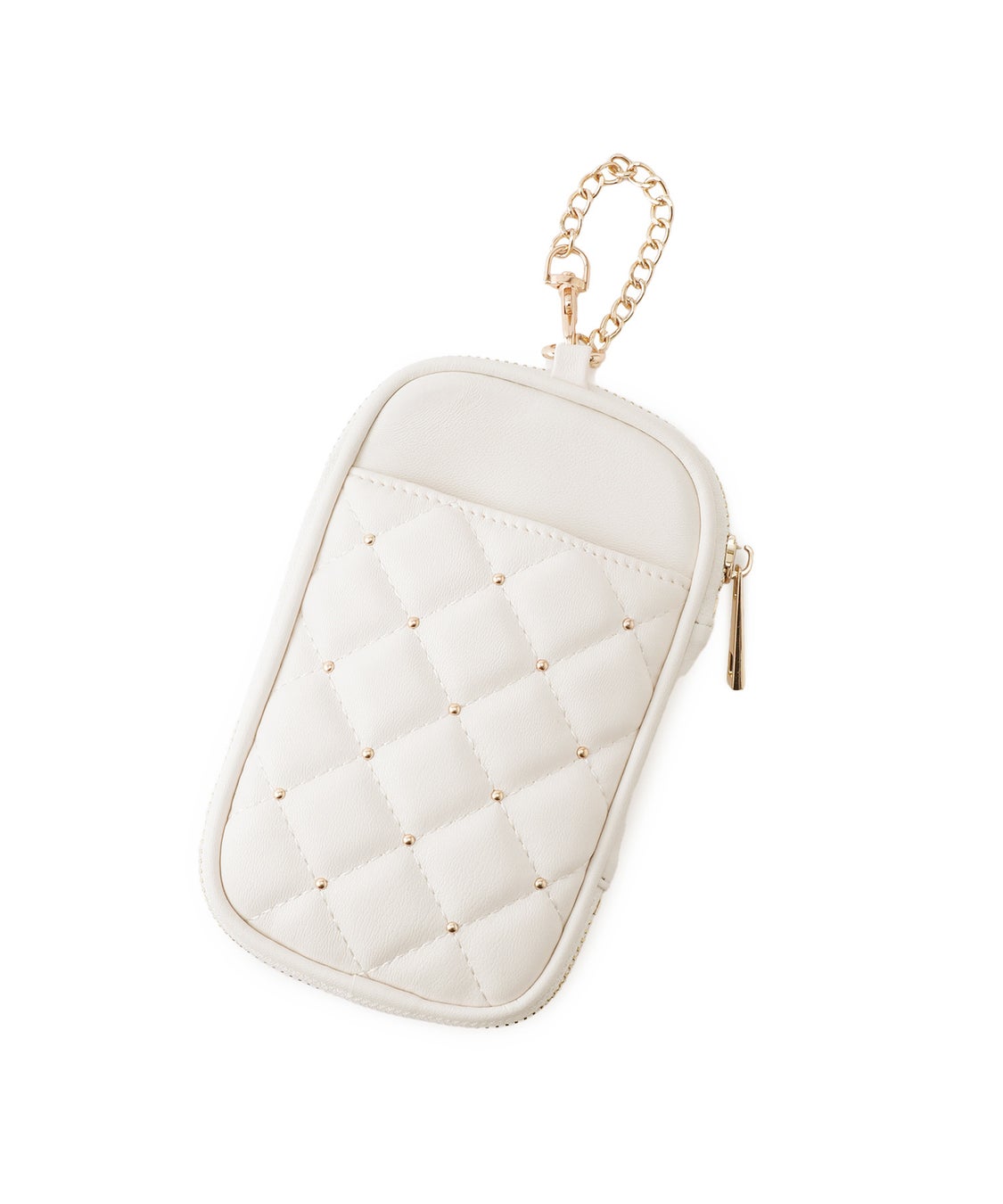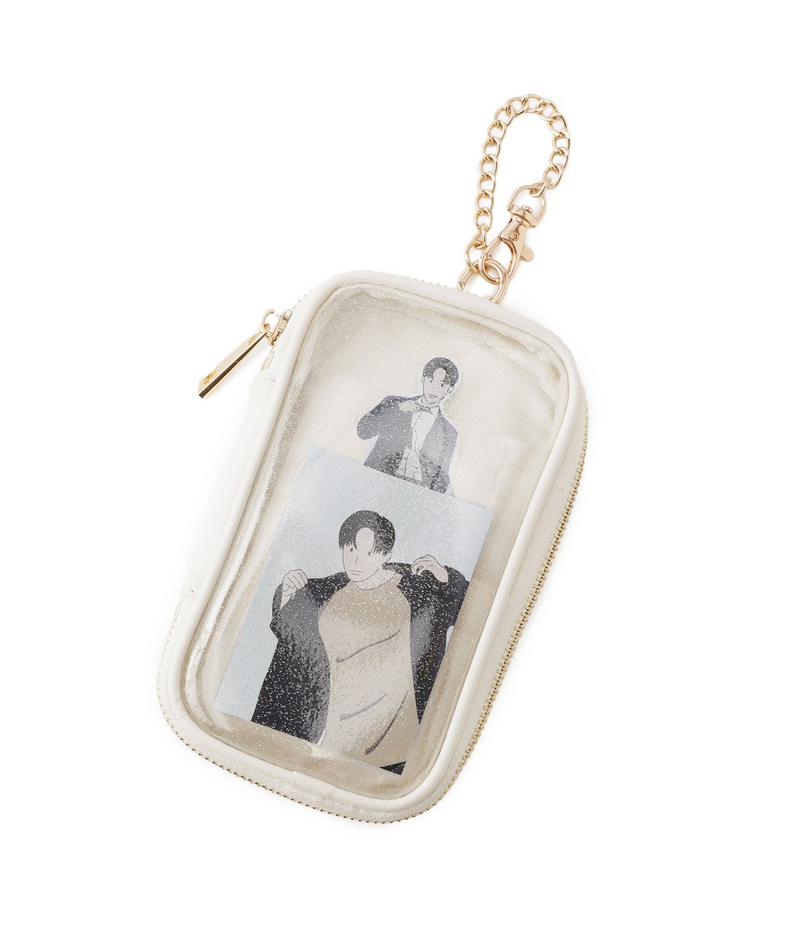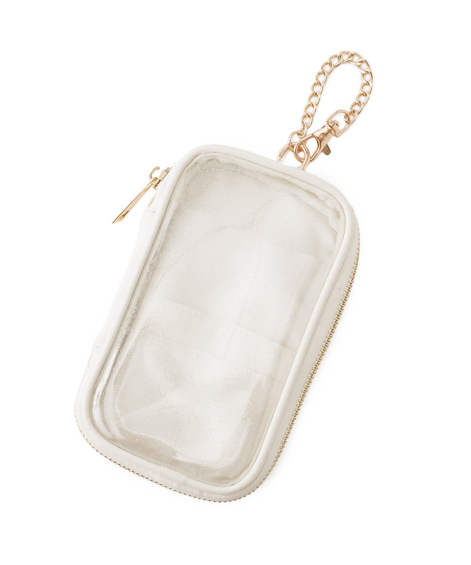 表側はラメ入りクリア素材、裏側はキルティングのポケット付き。ICカードも収納できます。