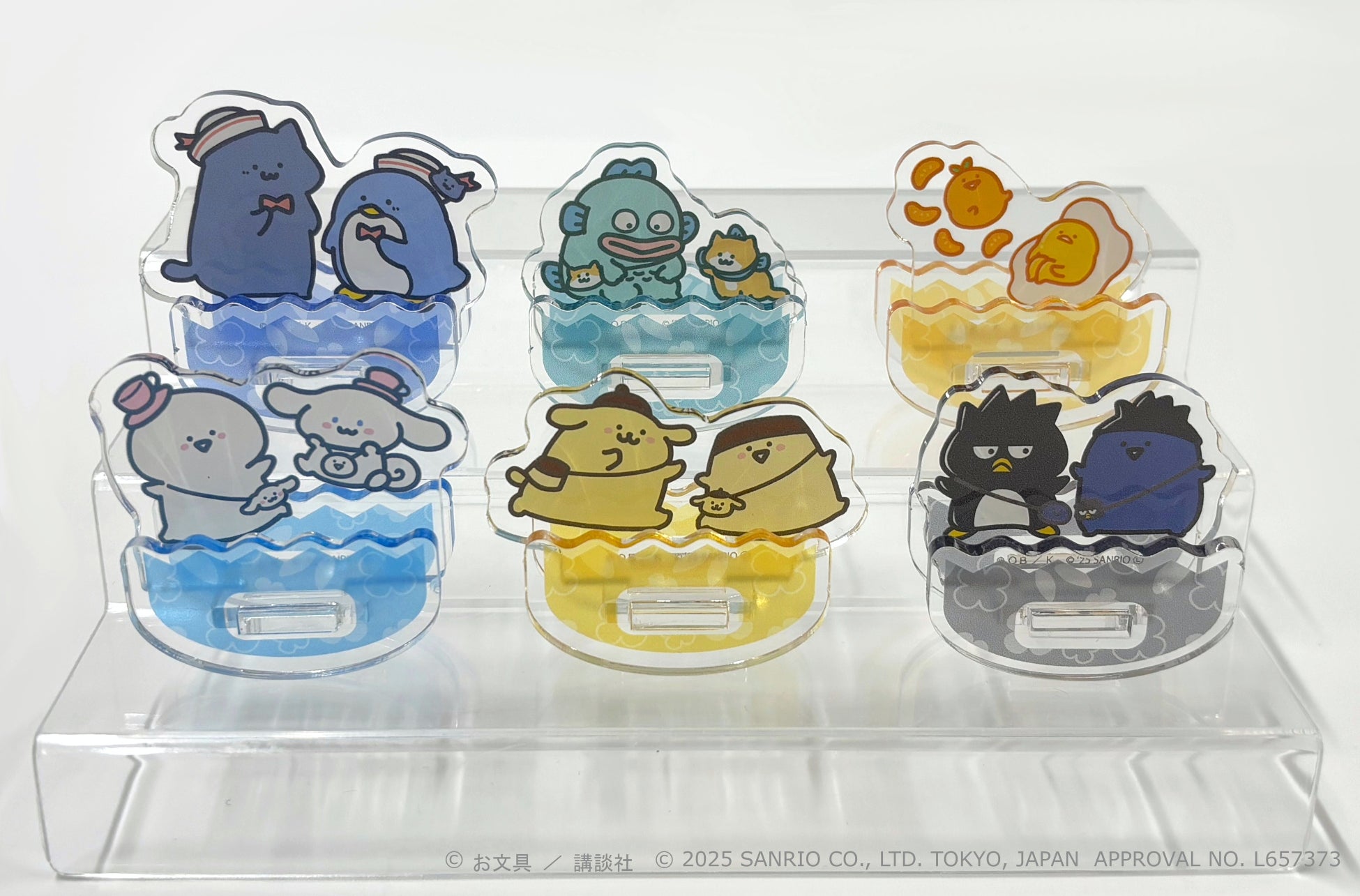 ナスカン部分が星型になっているポップなデザインのアクリルキーホルダーです。同じポーズをするほど仲良しな様子のお文具さんとサンリオキャラクターズが愛おしすぎる……!