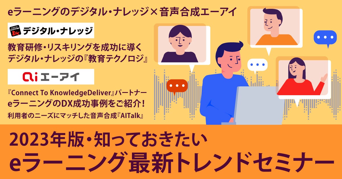 「2023年版・知っておきたいeラーニング最新トレンドセミナー」リスキリング/スキルマネジメント/デジタルバッジ《3/14(火)オンライン開催》eラーニングのデジタル・ナレッジ×音声合成エーアイ
