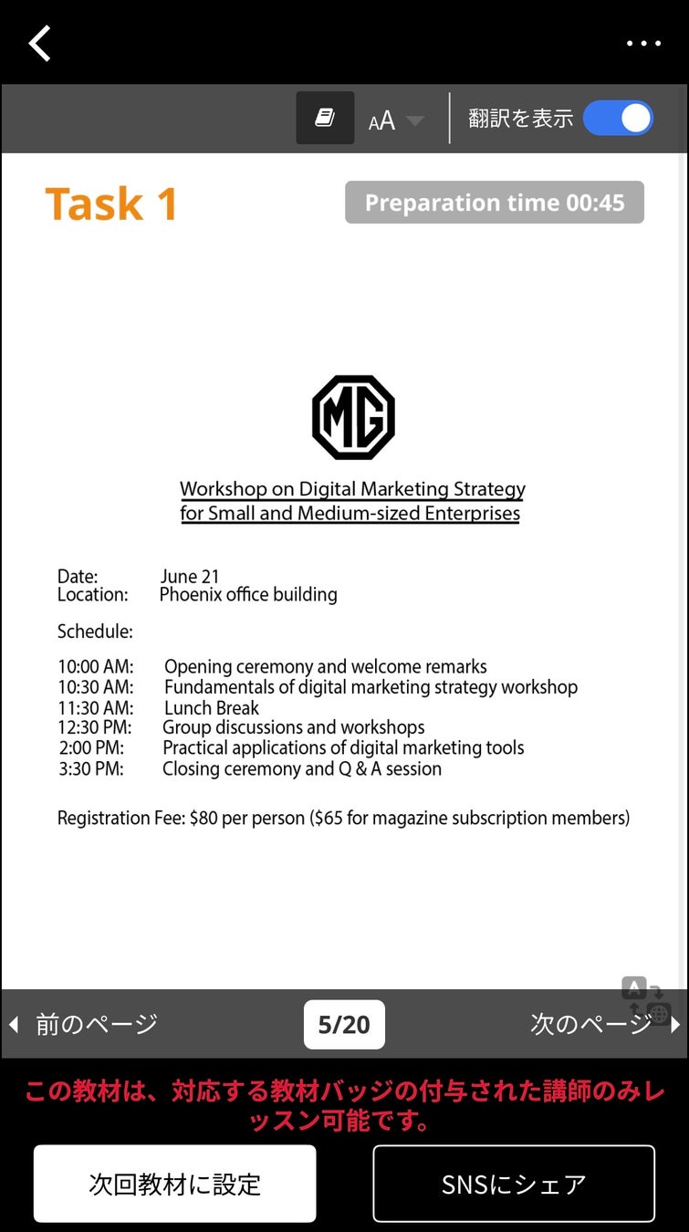 TOEIC® Speaking Test「応答問題」の対策ができる教材です。提示された資料や文書(スケジュール等)の情報を読み取り、3つの設問に答える対策を行います。