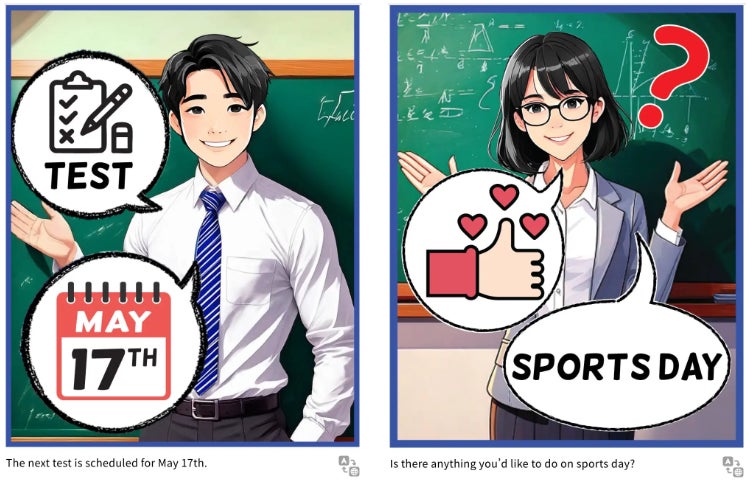 教員の方が実務で直面する状況を想定したロールプレイ教材です。ホームルームの進行、宿題の指示、校則の説明など、場面をイメージしながら実践的な英語力を身につけることができます。