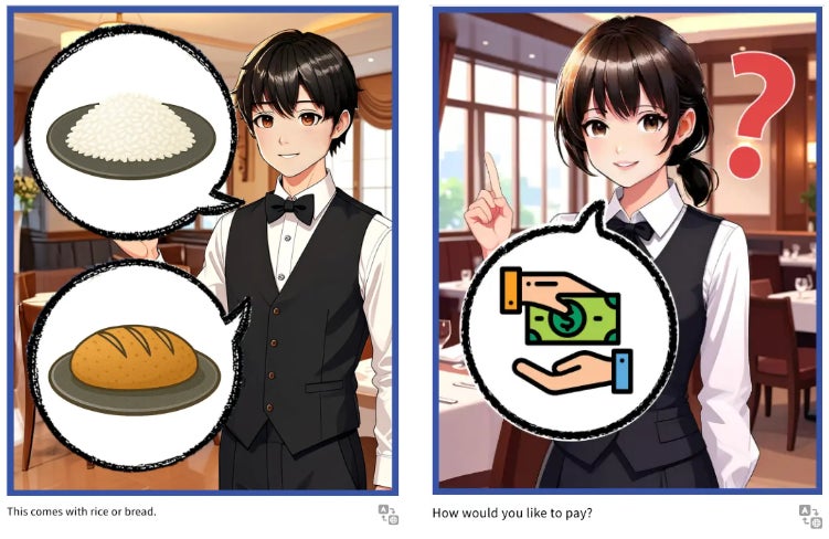 席の案内やメニューの説明など、レストランで働く際に必要となる英語フレーズを実践的なシチュエーションを通じて学習できます。