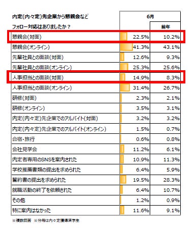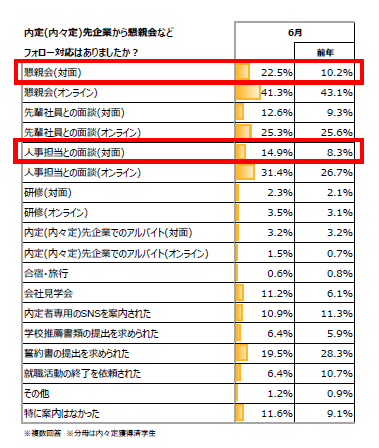 (3) 内々定者フォローは、昨年に比べて対面実施が増加